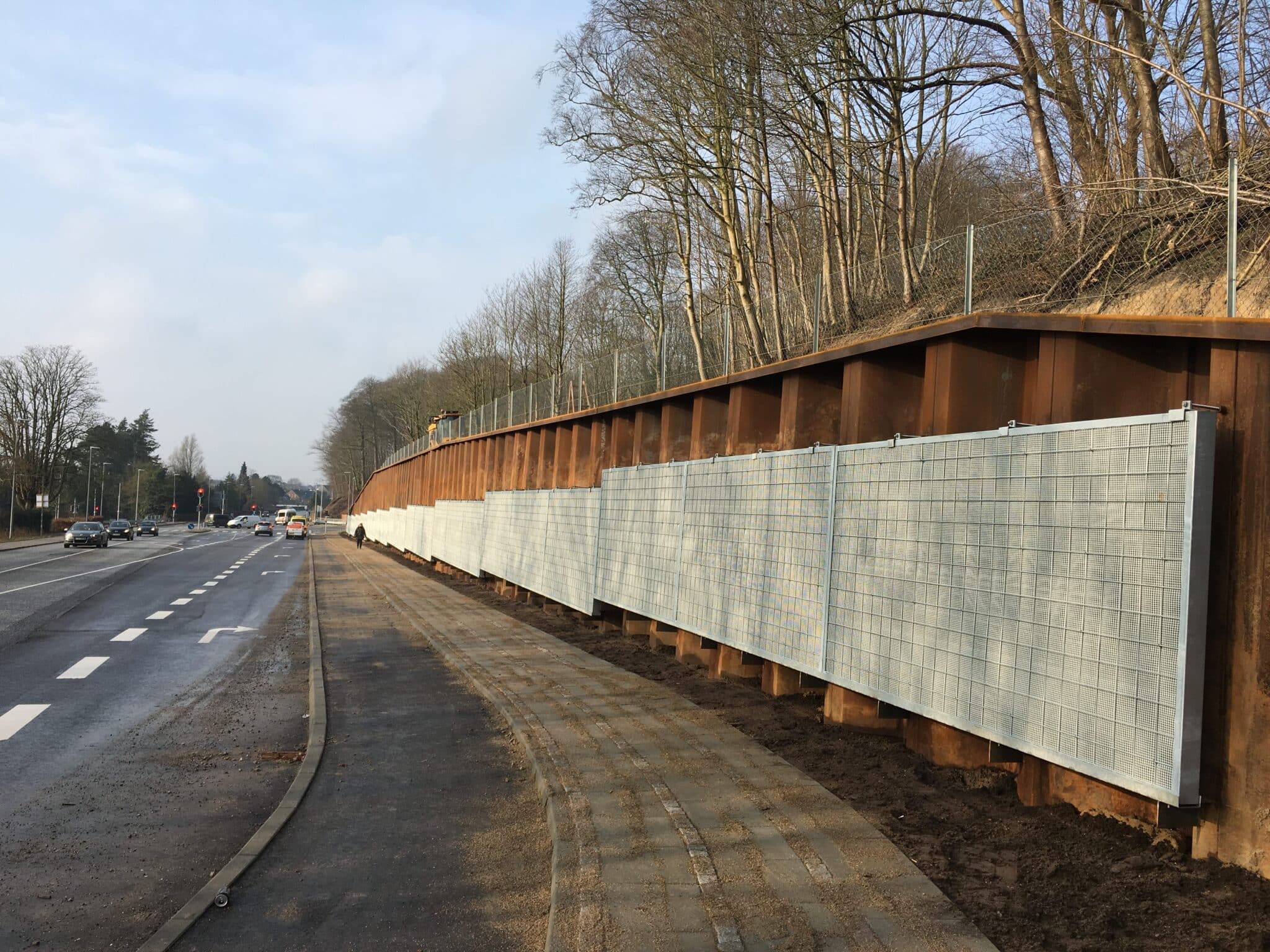DAV NORDIC er forhandler af BUDANh500 støjskærmskassetter fra producenten Bud-Masz. BUDAN h500 støjskærm opsættes typisk langs tæt trafikerede veje, hvor støj er blevet en gene for de omkringboende. Med en støjskærm langs med færdselsåren, dæmpes støjen markant, og derved øges livskvaliteten for dem der bor tæt på. Støjskærmskassetterne er udført med overflader i aluminium, og en kerne primært af isolering. Hvor skærmen ønskes absorberende, perforeres aluminiumsoverfladen så lyden opfanges. Alle synlige flader males i ønsket farve for at passe ind i det omkringliggende område.